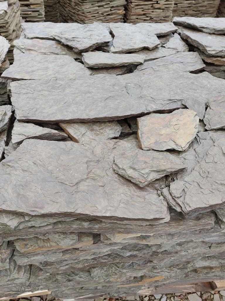Плитняк песчаник дракон серо-зелёный для облицовки цоколя, отмостки 20-35 мм